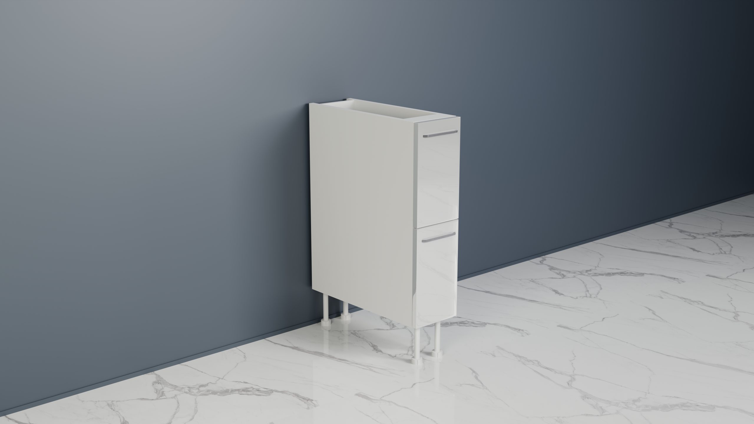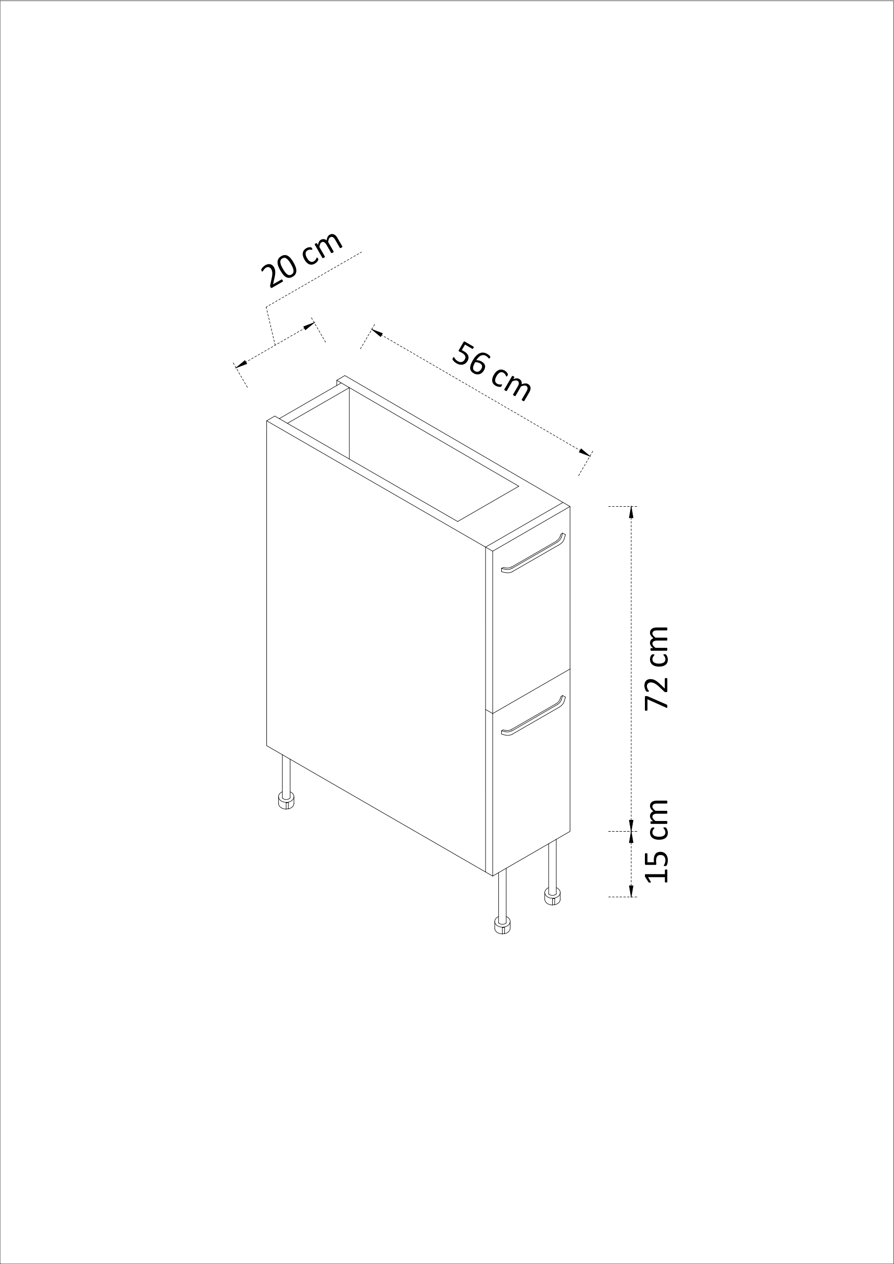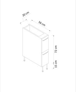 - 20cm genişlikte tencerelik hazır mutfak alt dolap modülü 18mm Avrupa Kalite Standardı E1 kalite normunda Beyaz MDF Lam’dan imal edilmektedir.