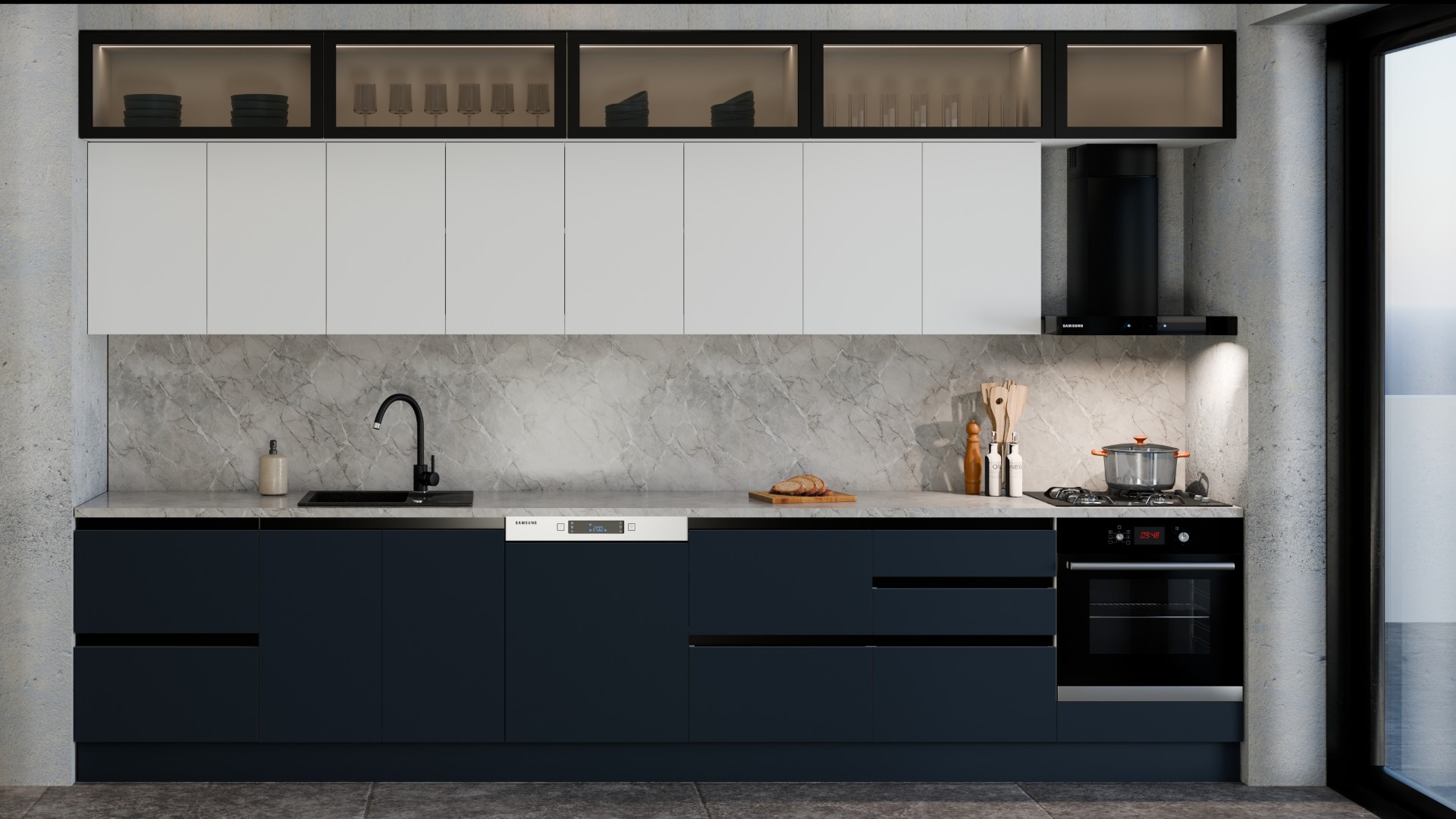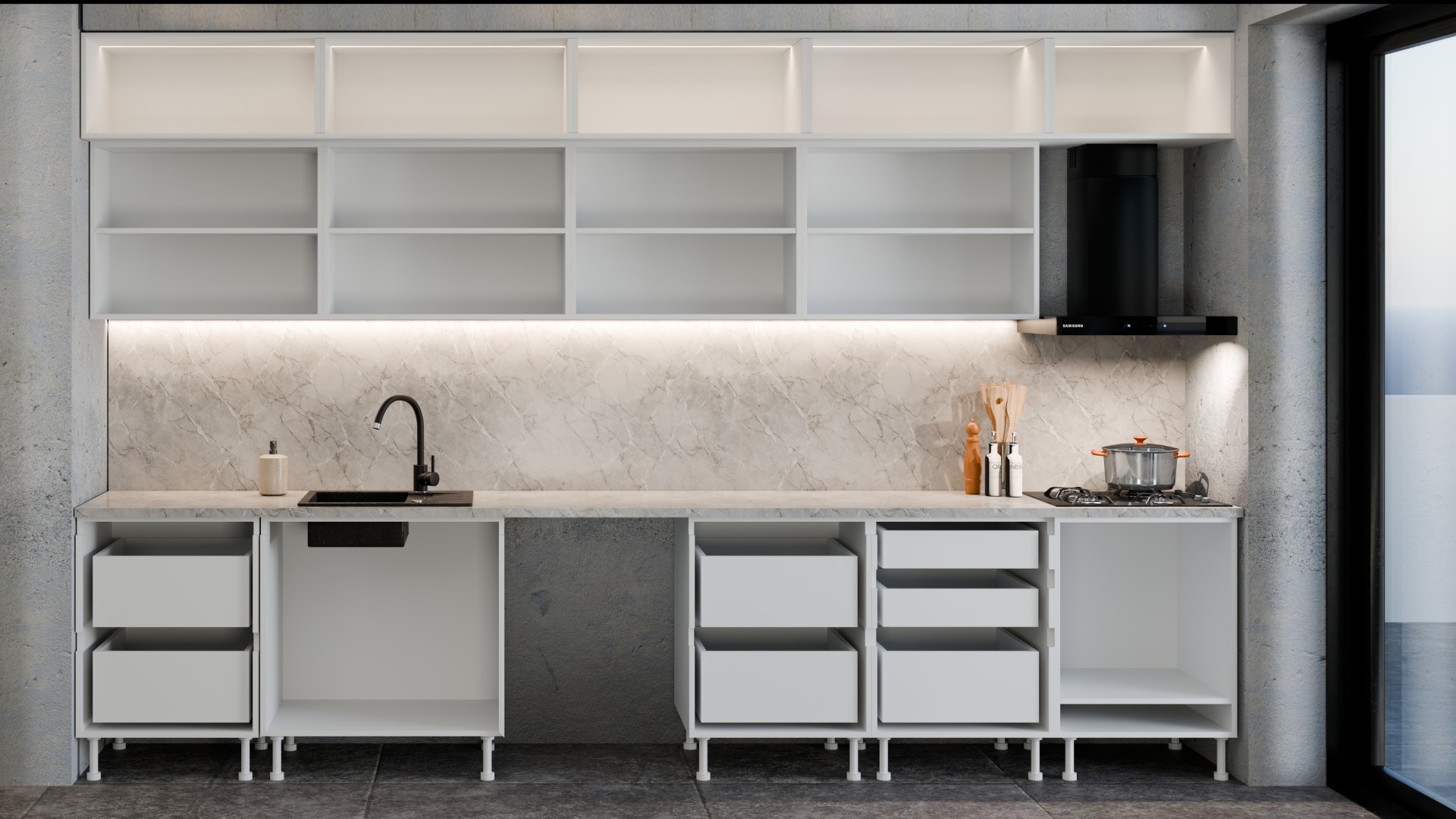 - Modüler yapısı sayesinde dolabınızın modüllerini görseldeki mutfak tasarımından bağımsız olarak dilediğiniz gibi yerleştirebilirsiniz.