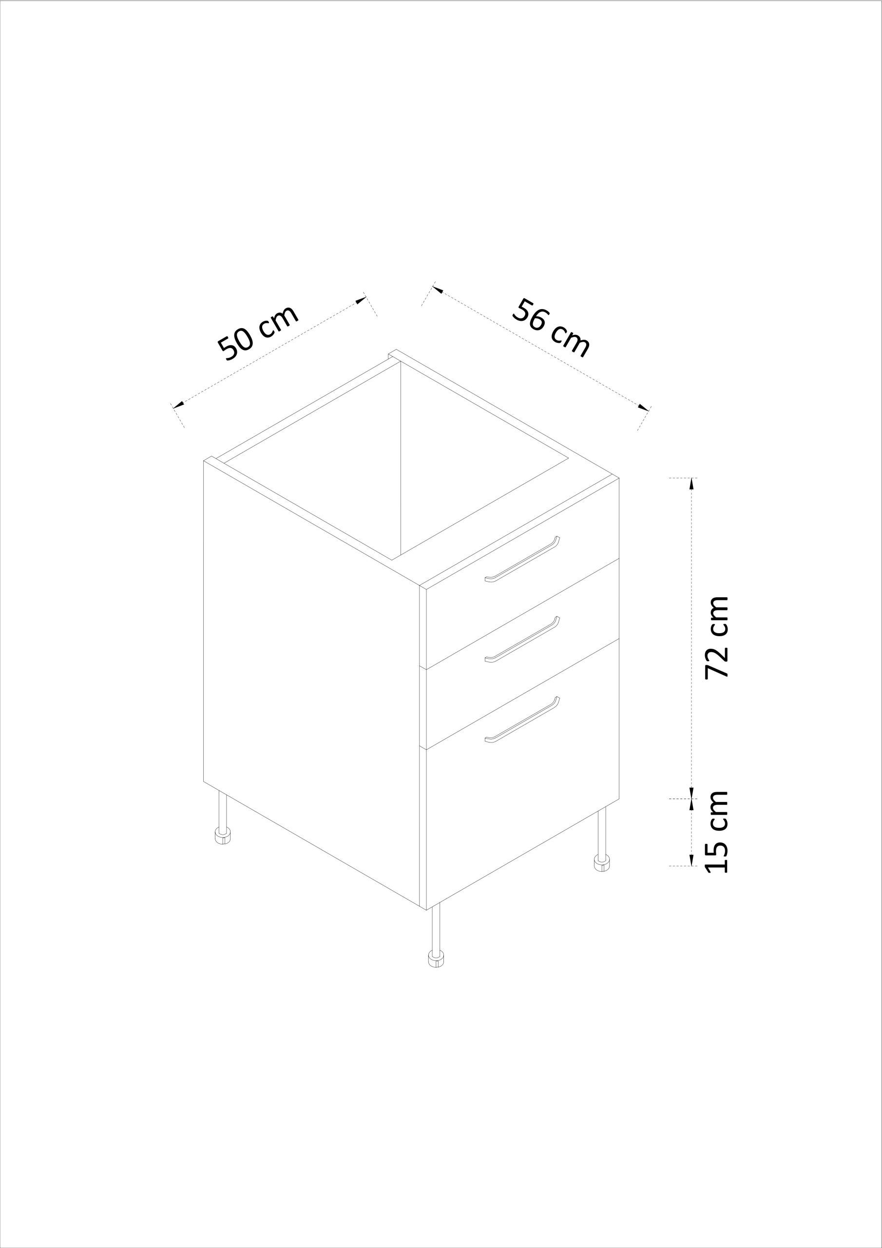 50cm Hazır Mutfak 3 Çekmeceli Alt Dolabı